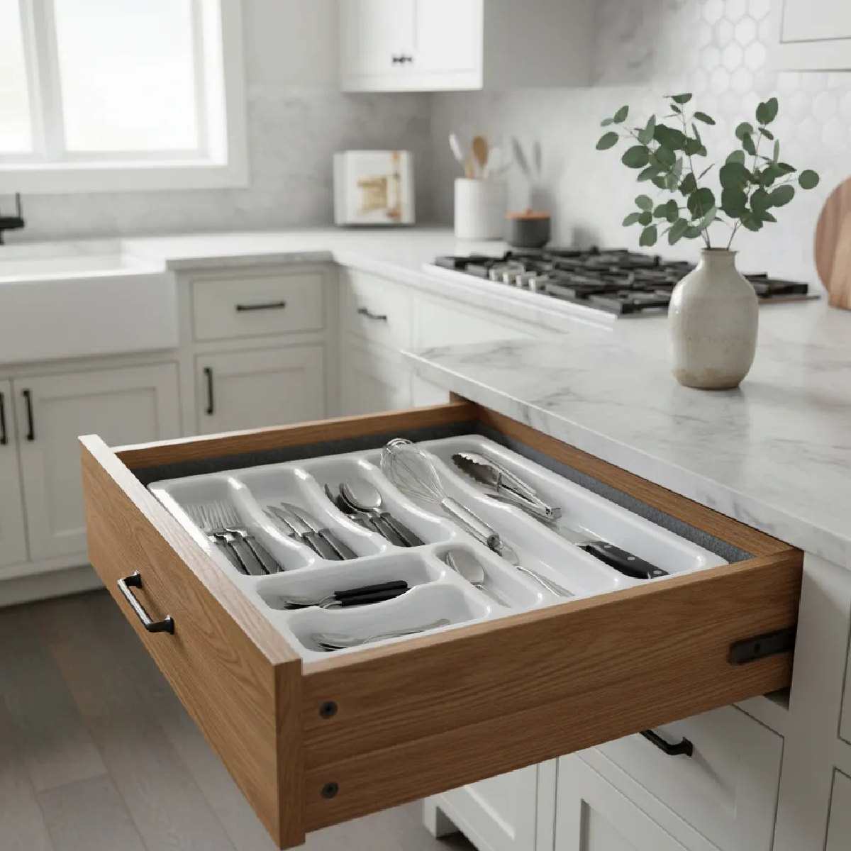 Dale a tu cocina el orden que se merece con este práctico organizador de cubiertos .